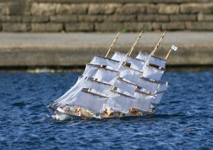 Congratulations to Neville Wade who wins ‘Photo of the Month’ for July. His photograph of this model ship really captures the movement and elegant lines of the model as it sails across the boating lake in the park.